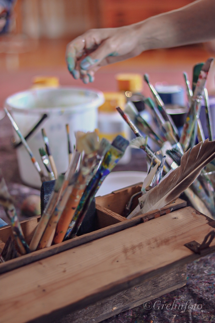 Ta på oömma kläder - målarskjortor finns att låna.