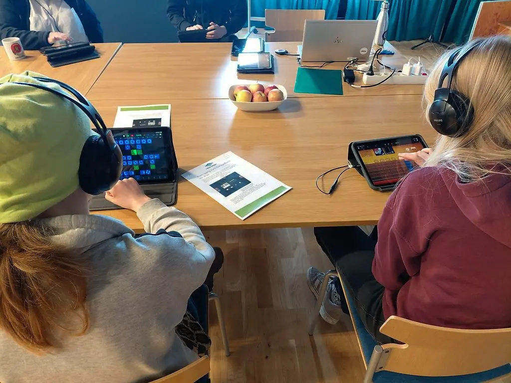 Det rådde fullt fokus när deltagarna utforskade appen "Garageband" som används för att skapa och spela in musik.