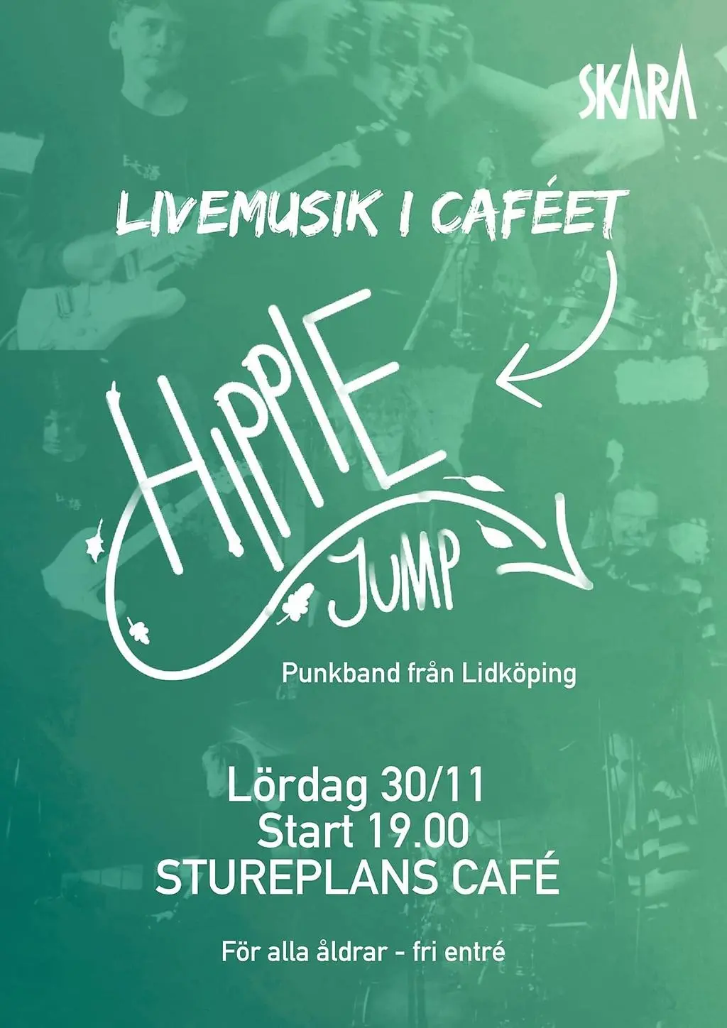 Kulturskolans punkband Hippie Jump spelar i caféet på Stureplan - Ungdomenshus i Skara lördagen den 30 november klockan 19:00.