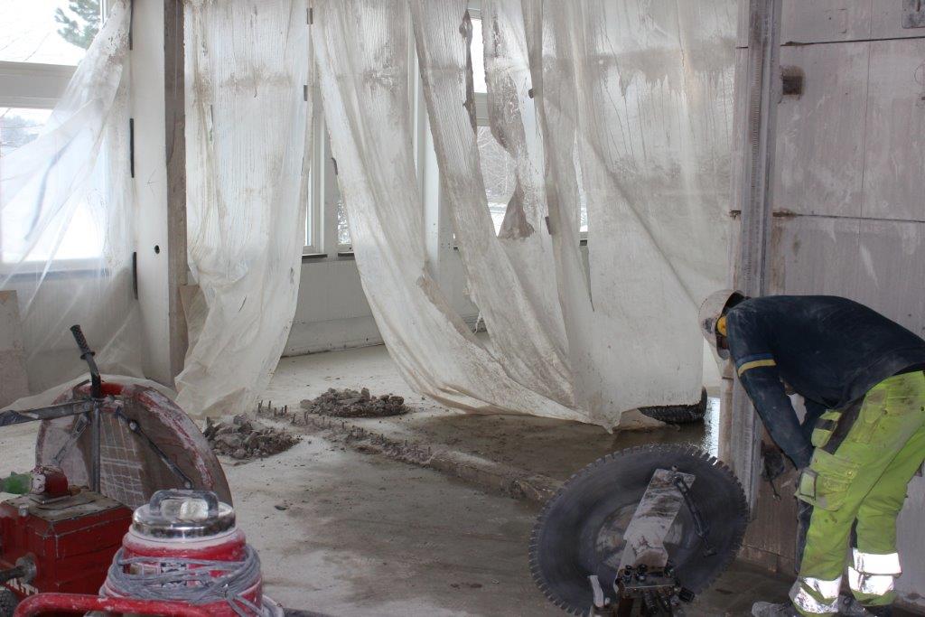 Förstora bildenBetongväggen sågas ned i gamla delen. Klicka på bilden för att förstora.