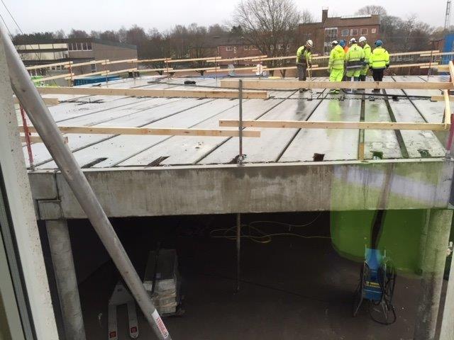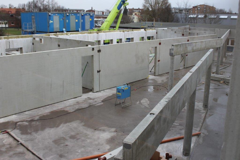 Förstora bildenBetongbjälklaget på bottenplan monteras. Klicka på bilden för att förstora.