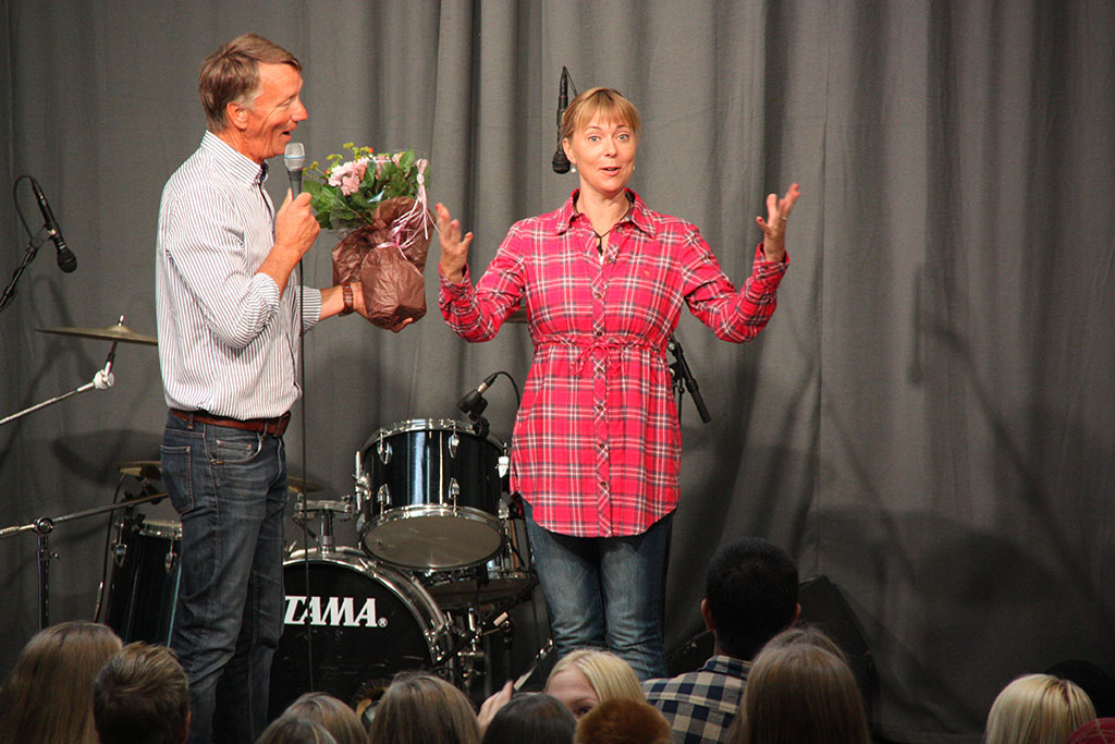Förstora bildenProjektledare Gunnar Nordlie ger en blombukett till Anna-Karin Gagnemyr som lämnade det vinnande namnförslaget. Klicka på bilden för att förstora.