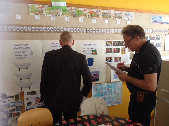 Förskoleklasserna fick i uppdrag att ta reda på hur många liter vatten en sexåring gör av med på en dag och om det finns något vattenslöseri som man kan undvika. För att göra arbetet konkret skapade eleverna en låtsaskompis, vars vattenförbrukning de kartlade. Eleverna åskådliggjorde på olika sätt mängden vatten som den nya klasskompisen använde under en dag och funderade på om det var någon onödig vattenförbrukning som låtsaskompisen kunde sluta med. Vattentemat väckte stor nyfikenhet av olika slag hos eleverna. Några klasser ville veta mer om vattenförbrukningen i samband med ett toalettbesök och bjöd därför in Niclas Karlsson från Sälles rör. Nicklas hade med sig en toalettstol och visade exakt hur den fungerar. Det väckte nya tankar och funderingar hos eleverna och resulterade i ett besök på reningsverket. Några andra klasser ville veta mer om hur barn i utvecklingsländer får tag i vatten och hur mycket vatten de använder på en dag. Därför bjöds Inga Fransson som arbetar med bistånd in för att berätta mer om detta. Eleverna fick bland annat lära sig hur en solenergidriven vattenrenare fungerar. Eleverna på en annan skola fick prova på att hämta och bära vatten som man gör i många delar av världen, för att känna på hur tungt det är.