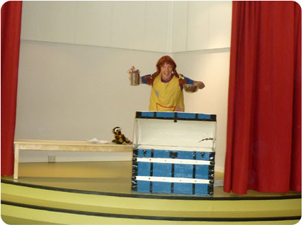 När applåderna avtog fick man ett överraskande besök av självaste Pippi Långstrump som letade efter en skattkista. Med hjälp av en skattkarta letade hon sig fram till förskolan och passade på att berätta om skolbesök, tjuvar och guldpengar. Pippi blev förtjust i förskolans skattkista men fick lova att inte ta med den hem trots det spännande innehållet.