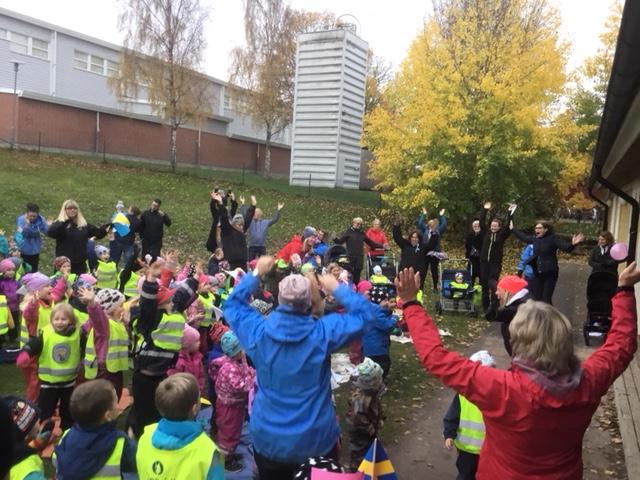Barn och pedagoger firade detta ihop med Jimmy Pettersson som sjöng och spelade. Förskolans kokerska Inger Andersson hade bakat tårta som man avslutade festen med.