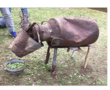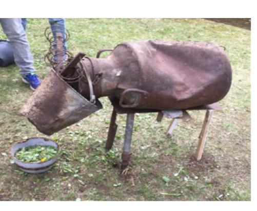"Vi har många hjortar där vi bor och tyckte därför att det passade bra att göra en hjort. Vi hittade även en stor mjölkkanna som vi ville använda och då bestämde vi att den skulle vara kropp och att vi skulle göra något djur som är lite större. Vi funderade på ko men tyckte att hjorten passade bättre, vi röstade mellan de två förslagen. Vi utgick från mjölkkannan som vi hittade. Vi hittade flera delar till ett fordon. Vi använde metallbitar och träpinnar till ben, mjölkkannan fick vara kropp, en metallhink fick vara huvud."