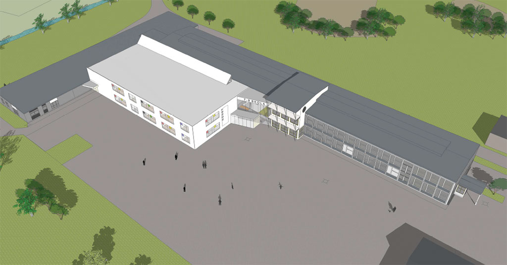 Förstora bildenTidig skiss på nya 7-9-skolan. Klicka på bilden för att förstora.