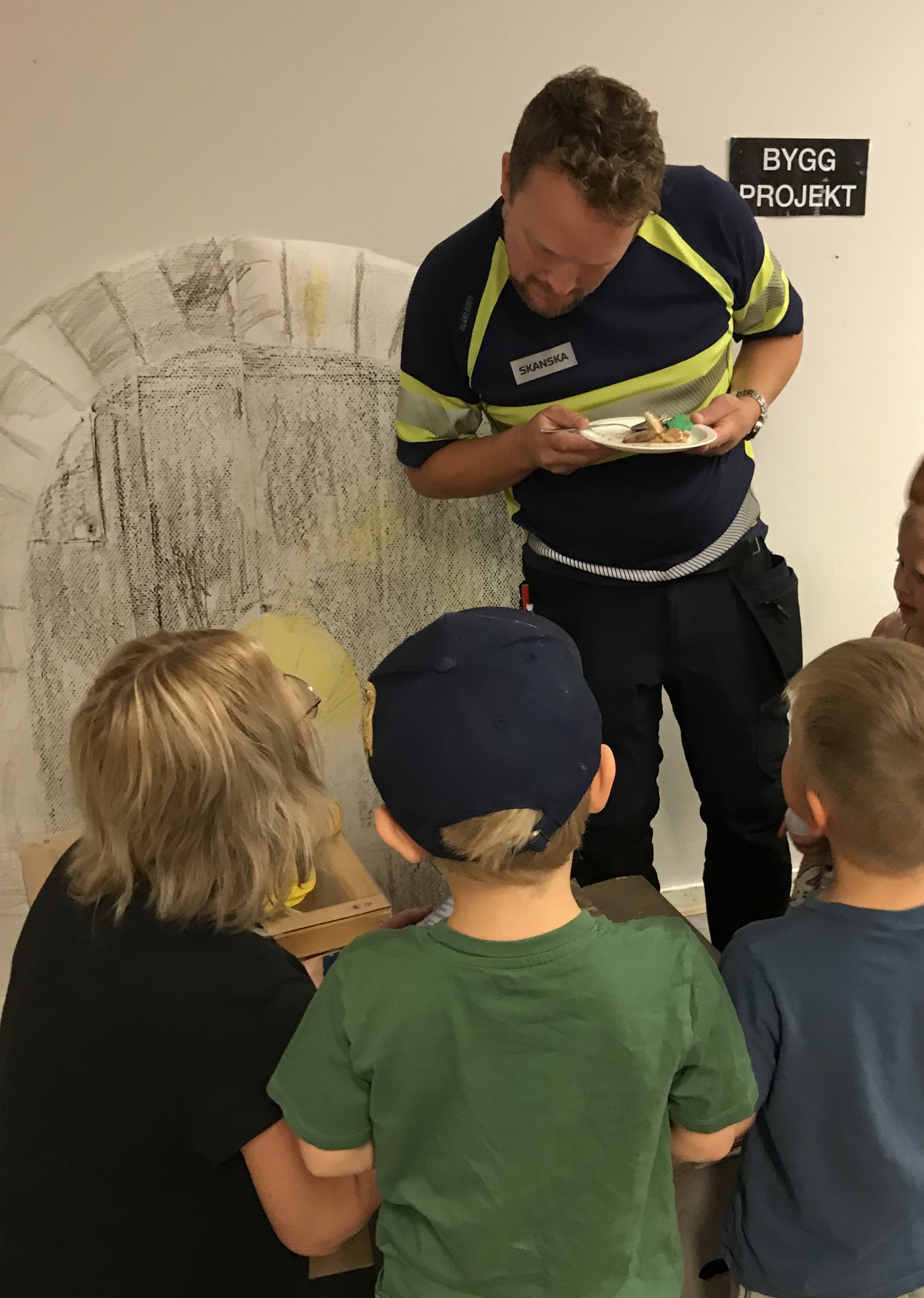 En kul start på årets projekt ” Lek, bygg och framtidstro” var när barnen på Västerby förskola fick träffa produktionschefen Totte, som ansvarar för bygget av vår nya förskola. Med stort intresse och nyfikenhet lyssnade barnen på när han berättade om hur man går tillväga när man bygger en ny förskola.