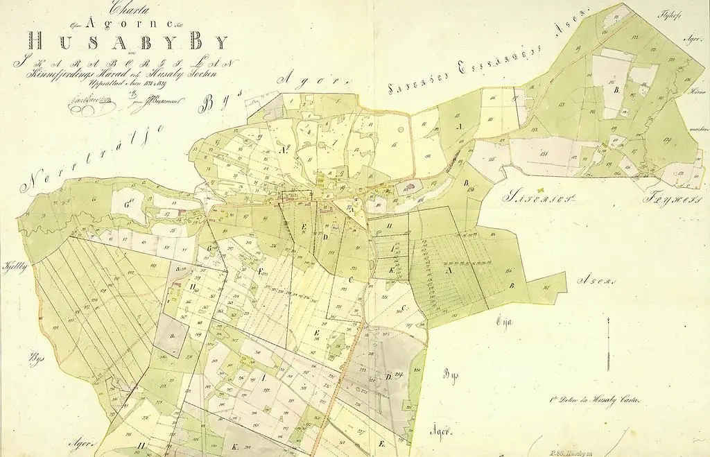 Förstora bildenLaga skifteskarta över Husaby socken 1829. Karta från Lantmäteriet