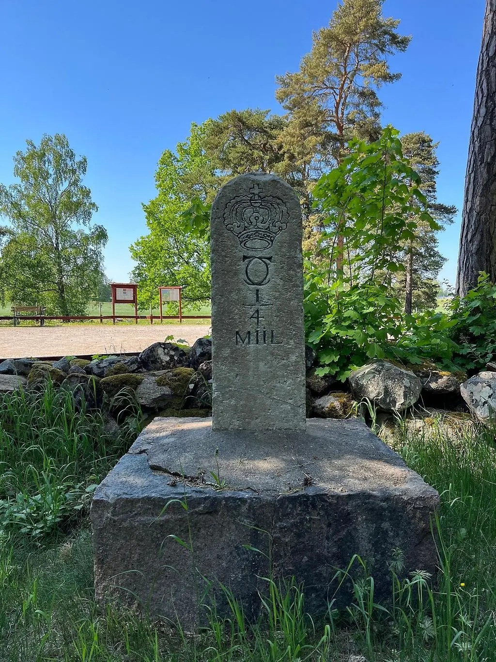 Förstora bildenMilsten som anger kvartsmil, vid Årnäs.