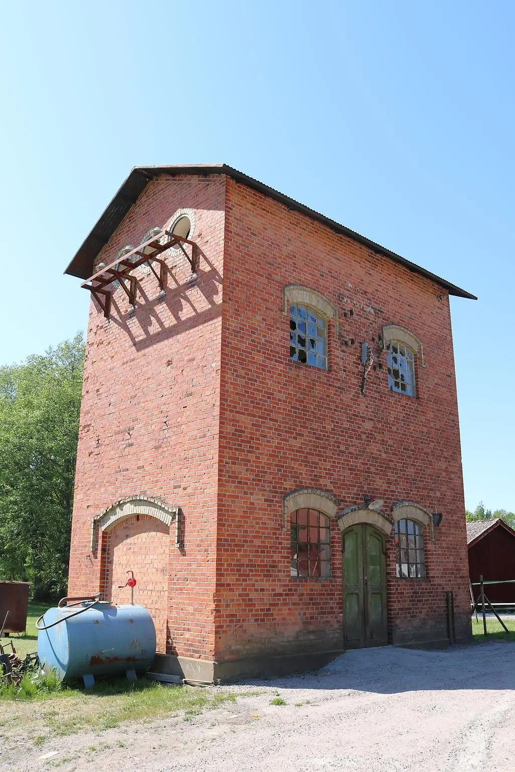 Förstora bildenÅrnäs 2:57. En transformatorbyggnad i bruksområdets östra del. En byggnadstyp som när Sverige elektrifierades blev ganska vanlig. Idag har många av dessa byggnader rivits och de som finns kvar är därför värdefulla att bevara. Den visar på ett viktigt steg i brukets utveckling när elektriciteten infördes.