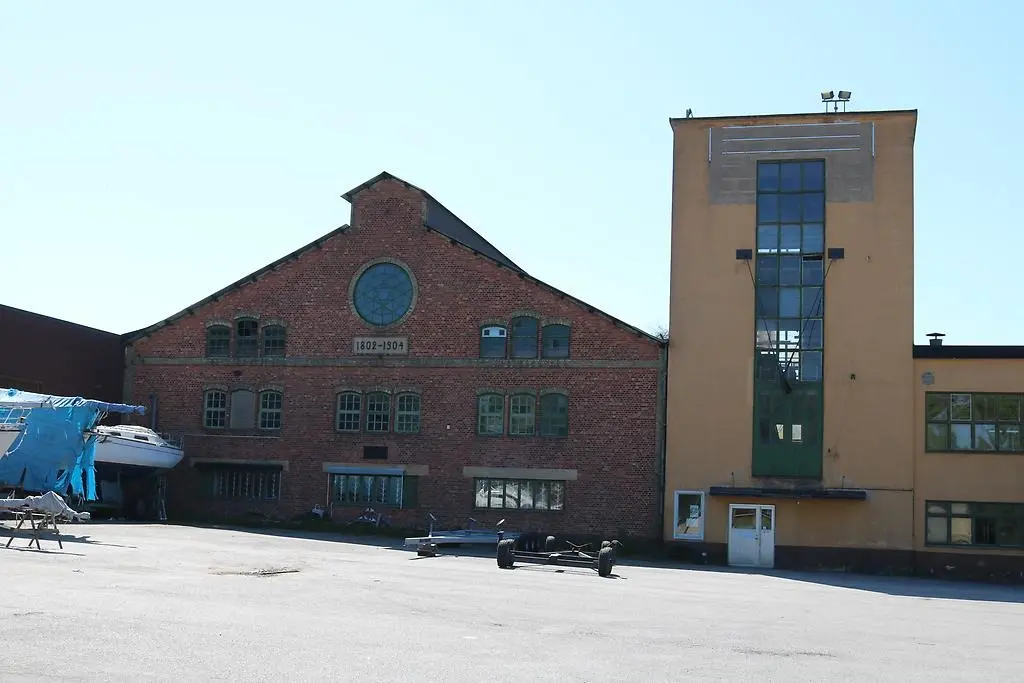 Förstora bildenÅrnäs 2:60. Till vänster gamla hyttan uppförd i tegel 1905 och till höger en del av nya fönsterglasfabriken i funktionalistisk stil uppförd 1940. De två byggnaderna utgör representativa fabriksbyggnader för sin tid och är båda exteriört mycket välbevarade.
