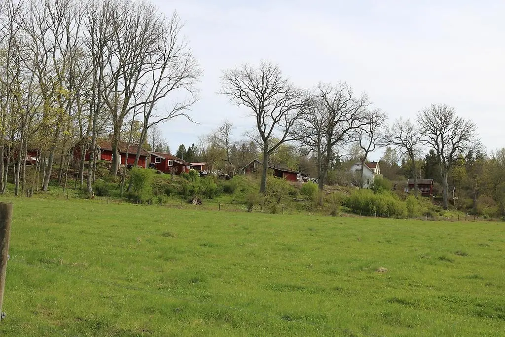 Förstora bildenDel av Hökastadens bebyggelse sedd från vägen som leder upp till byn från Trolmens herrgård.