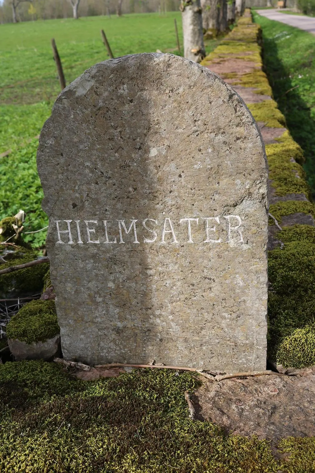 Förstora bildenLängs vägen som löper genom jordbrukslandskapet i områdets västra del finns denna gränssten som markerar den gamla ägogränsen mellan godsen Hielmsäter och Trolmen.