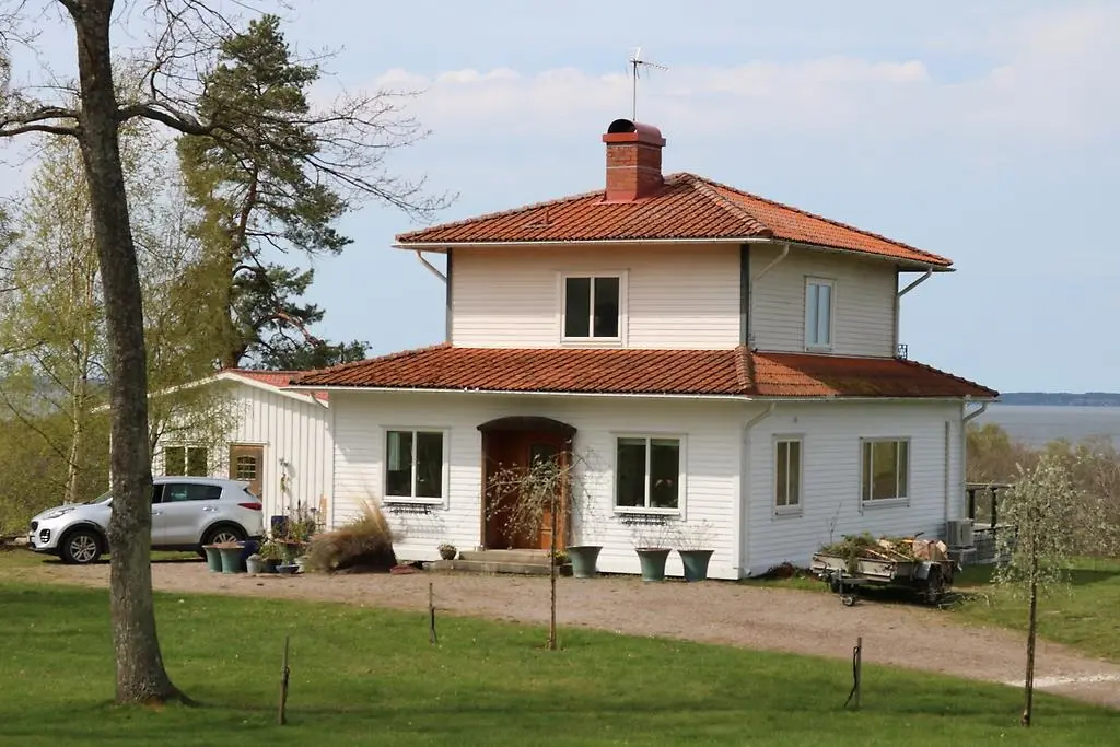 Förstora bildenRangtorp 1:30. Byggnaden har en nästan kvadratisk grundplan med ett halvcirkelformat burspråk på framsidan, vilket fortsätter i en öppen veranda. En balkong löper längs hela långsidan och vetter mot sjön. Sadeltaket är så pass valmat att det nästan bildar en spets, med en centralt placerad skorsten.