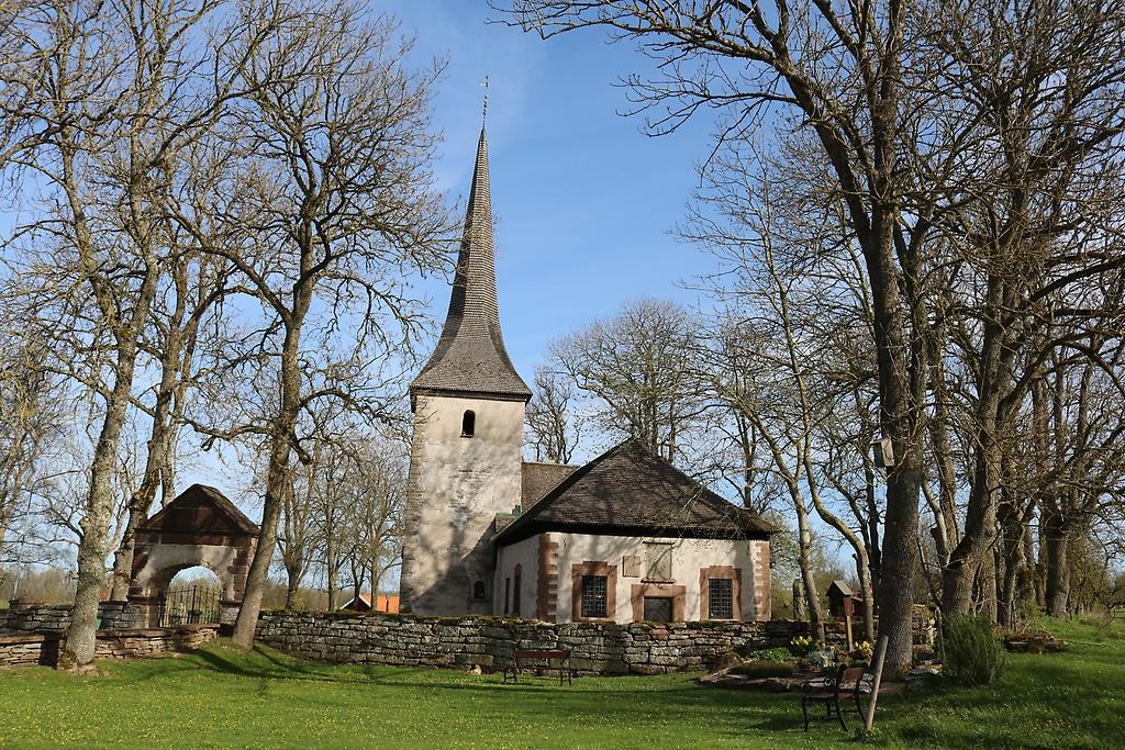 - Västerplana kyrka med medeltida långhus, kor, stiglucka och välbevarade inventarier från 1100-talet.