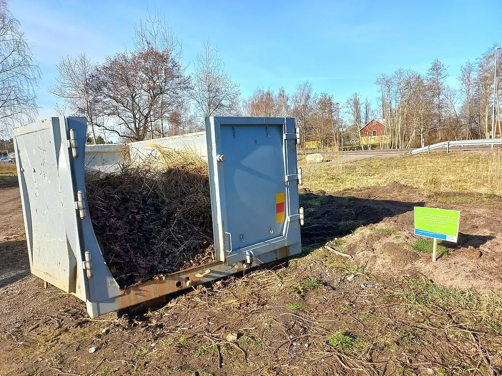 Observera: Endast trädgårdsavfall får lämnas i containrarna. Överfulla containrar töms inte, vänta till nästa tömningsdag innan du lämnar mer.