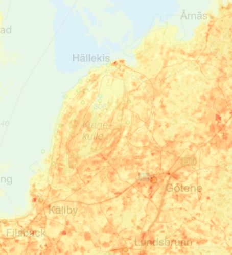 Förstora bildenEtt urklipp från MSB:s värmekartering över Götene kommun.