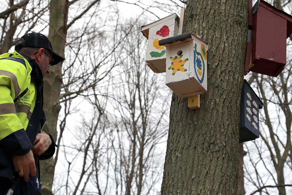 Natur- och fornvårdslaget sätter upp holkar i Brunnsparken i Lundsbrunn