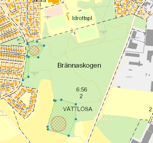 - Grön markering på kartan-gallring i anslutning till de angripna området.