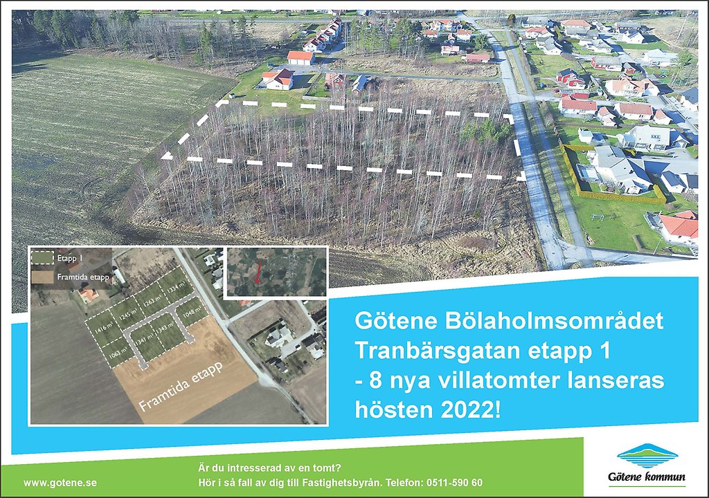 Försäljningen av tomterna beräknas starta hösten 2022. Är du intresserad av en tomt eller har frågor gällande försäljningen är du välkommen att höra av dig till Fastighetsbyrån i Götene, 0511-590 60.