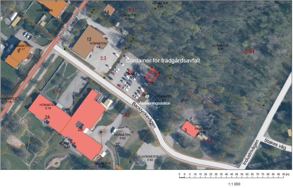 Öster om återvinningsstationen, utmed Lundvägen. Containern kommer stå avskilt från de övriga containrarna.