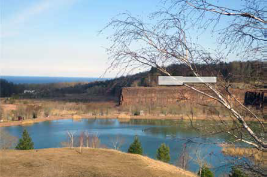 Stenbrottets stora mått gör samtidigt att också en stor byggnad både kan samverka med och underordna sig miljön. Att berggrunden ligger i dagen gör marken också mycket tålig, samtidigt som platåbergens geologi inte på någon annan plats är så åskådlig.