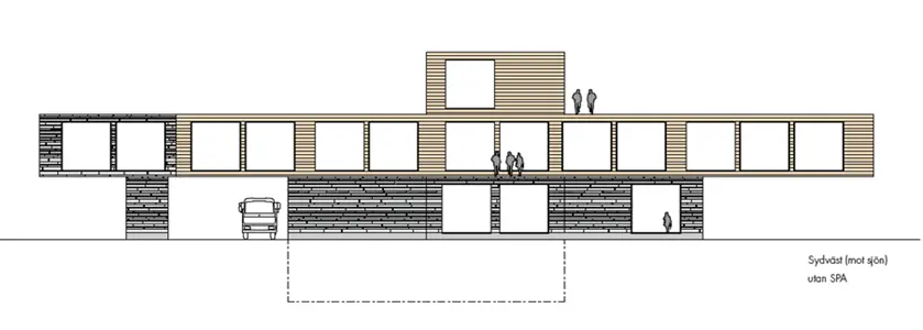 Preliminära skisser visar att en anläggning med det innehåll som presenterades i rumsprogrammet ovan, plus parkeringar, låter sig rymmas på mark som ägs av Götene kommun och utanför avgörande naturskydd. Skisserna nedan visar hur ett naturum skulle kunna ta rollen som nav i en anläggning där hotelldelarna breder ut sig på ömse sidor.