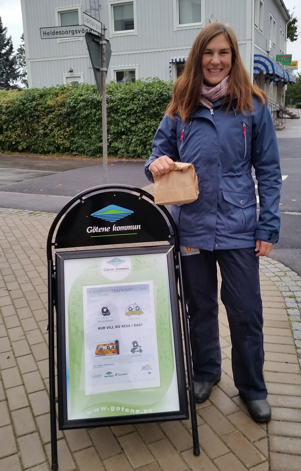 -Det är tredje året i rad som Götene kommun delar ut frukostpaket till folk under trafikantveckan, och i år tog påsarna slut fortare än någonsin, säger energi- och klimatrådgivare Therése Elfström. Till nästa års trafikantvecka får vi överväga om vi ska ha fler påsar, för det är fantastiskt trevligt att möta alla glada medborgare, till fots och på cykel, och att få ge dem en uppmuntran för att de väljer bort bilen.