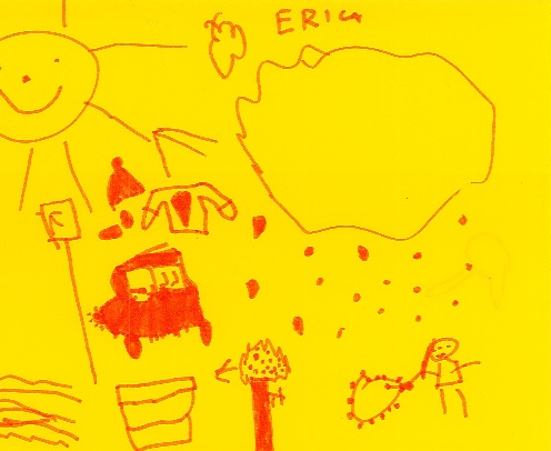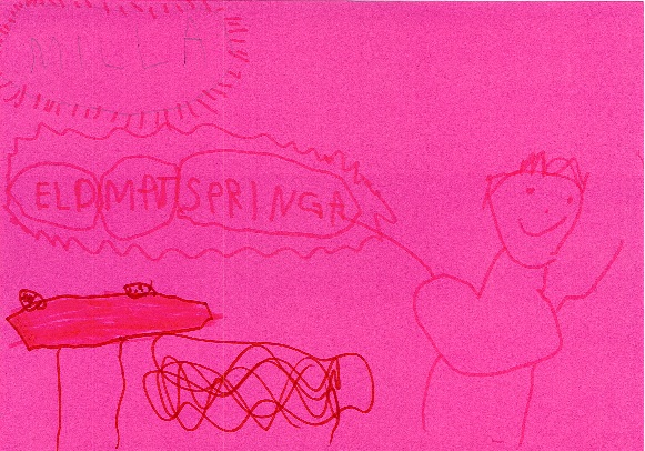 Här fick barnen känna att elden är varm för att det bildas energi och att en bit banan kan omvandlas till energi i magen. Barnen fick veta att energi kan vara massor av olika saker. Barnen fick måla sina tankar om energi , några av de alster som gjordes under dagen visas här nedan.