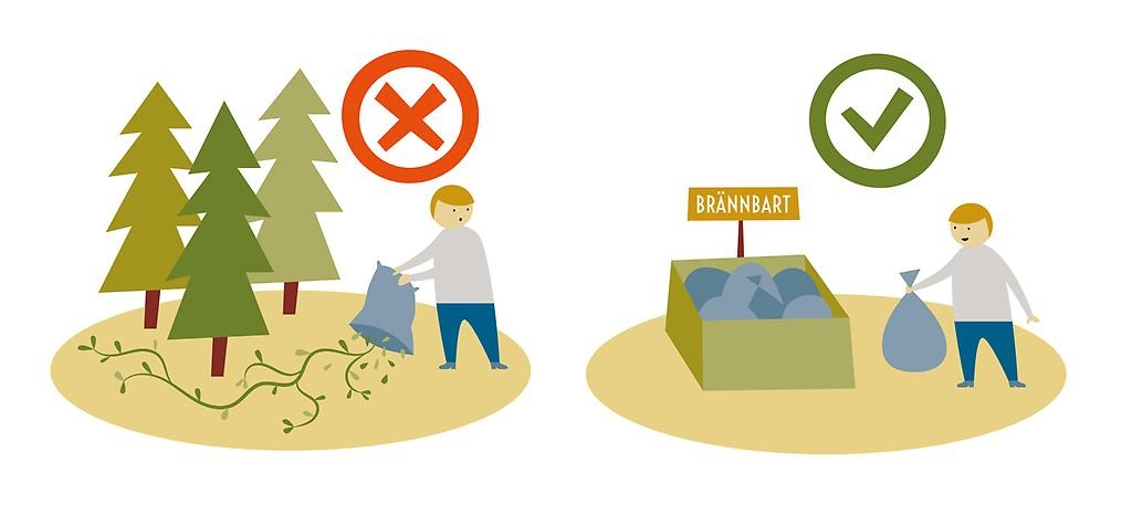 Om någon slänger trädgårdsavfall i naturen följer ofta fler efter. Det skapas platser där även andra former av avfall hamnar. Ta istället ditt skräp till återvinningscentralen, nedan kan du se vilka öppettider som gäller.