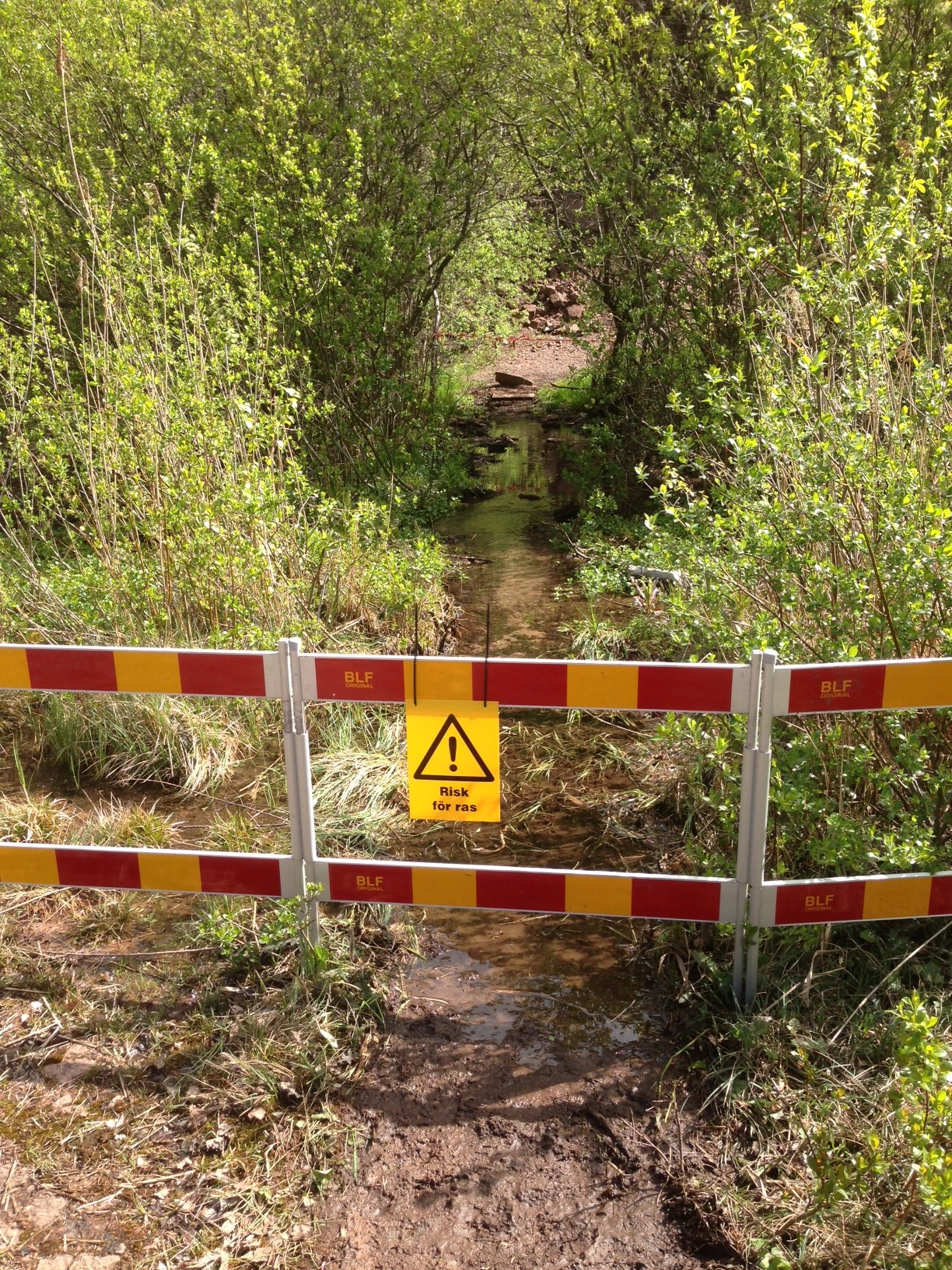 På grund av ras i Cementas gamla stenbrott har en viss sträcka av informationsslingan och stigen spärrats av.