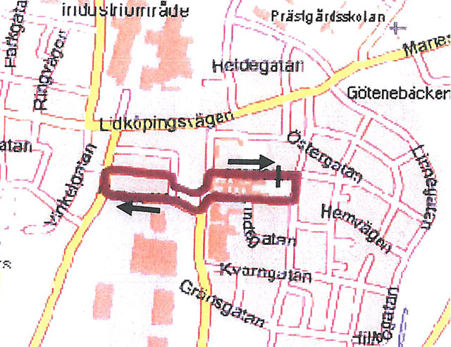 Avstängning: Torggatan, Norra Skaravägen (delen Radiogatan/Doktorsvägen), Doktorsvägen, Järnvägsgatan (delen Kraftgatan/Torggatan), Kraftgatan, västerbyvägen (delen Kraftgatan/Borgaregatan), Borgaregatan, Kinnegatan (delen Borgaregatan/Busstationen), Busstationen.