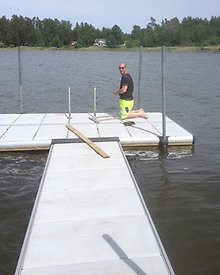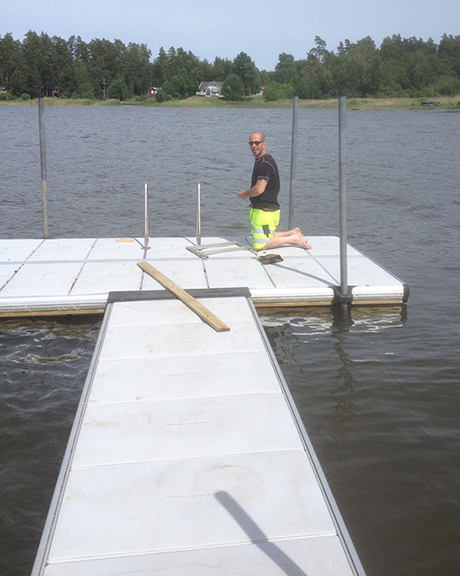 Nu finns badbryggorna på plats i Källby. Efter midsommar kommer bryggorna att läggas ut vid Blombergs badplats.