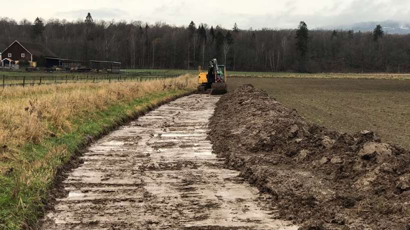 Nu har arbetet med att knyta ihop cykelvägen längs banvallen mellan Götene och Hällekis startat.