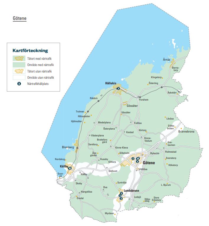 Närtrafiksområden i Götene kommun. Klicka för att förstora bilden.