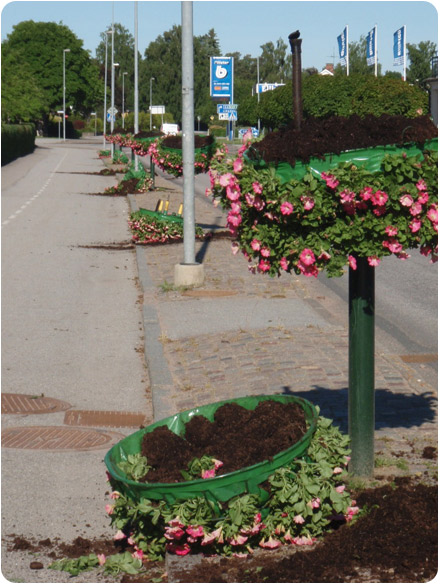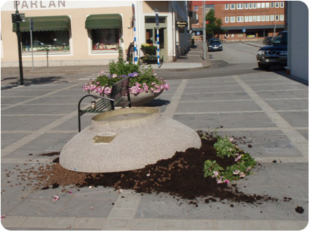Natten mellan söndag och måndag förstördes sommarblommorna längs Lidköpingsvägen. Även en blomsterurna på torget framför ICA förstördes.