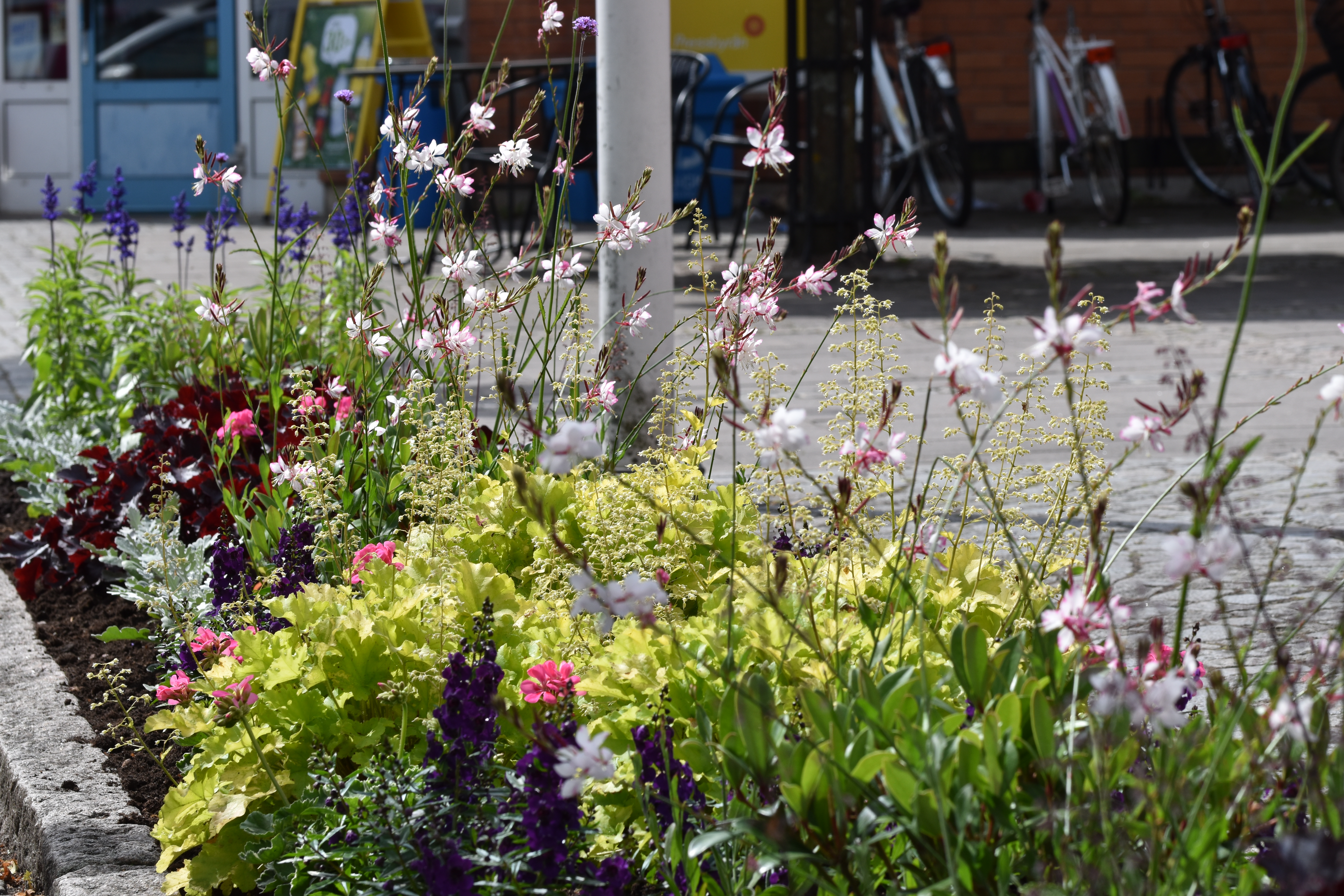 Parkavdelningen har gjort fina planteringar med sommarblommor som pryder Götene.