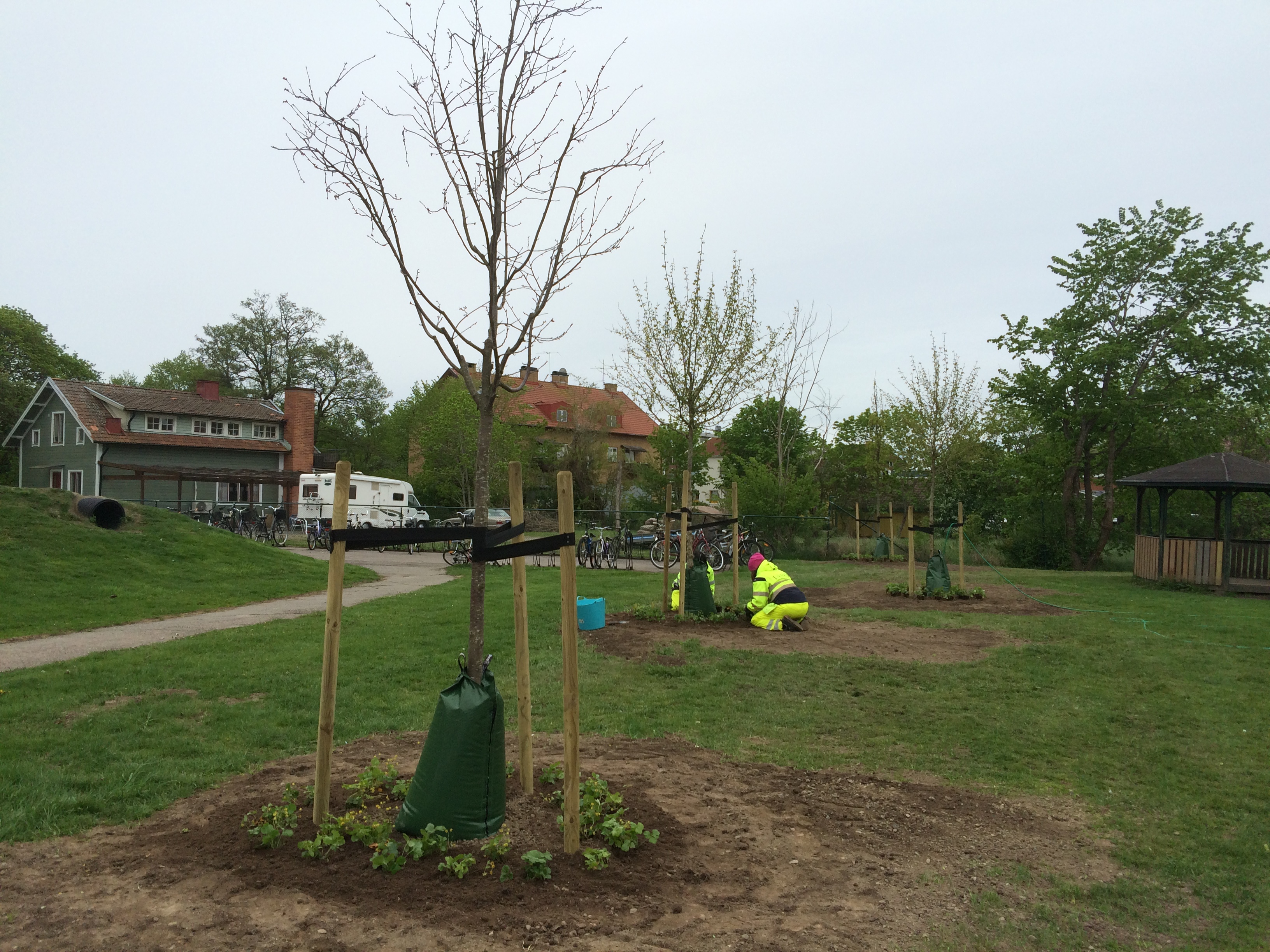 Service och Teknik har planterat nya träd på Prästgårdsskolans skolgården.