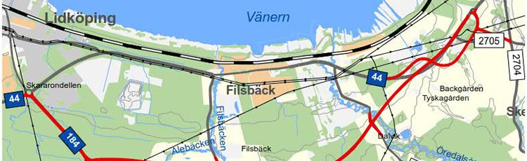 Trafikverket har byggt väg 44 i ny sträckning från Skararondellen i Lidköping till cirkulationsplatsen i Källby i Götene kommun. Vägen är nu mötesseparerad 2+1-väg med mitträcke. Det innebär att framkomlighet och trafiksäkerhet på sträckan blir betydligt bättre än tidigare. Oskyddade trafikanter kan i framtiden använda gamla väg 44 i en tryggare trafikmiljö. Det boende i Filsbäck får lugnare trafik, mindre buller och utsläpp och det öppnar också möjligheter för ny bebyggelse och nya verksamheter i samhället.