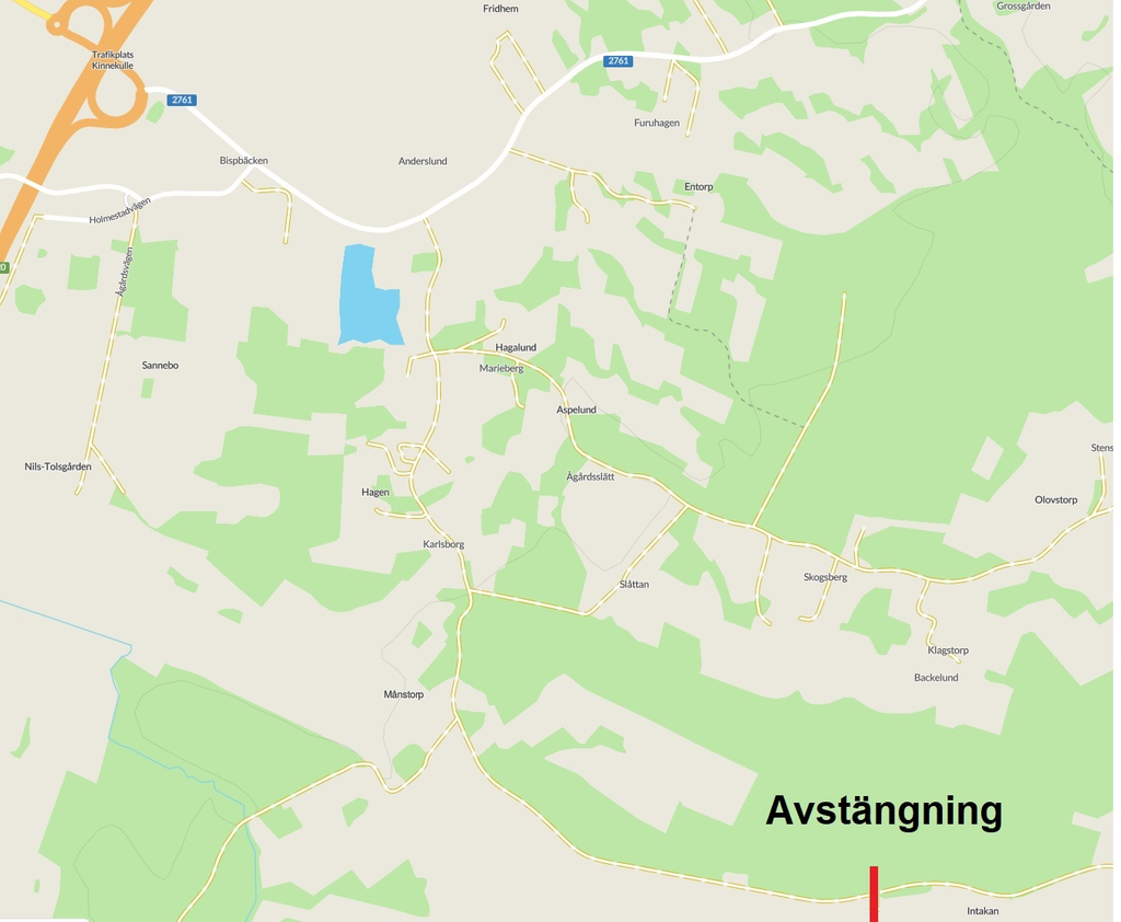Vägavstängning mellan Månstorps Gård och väg 2746 Ågården den 10 oktober