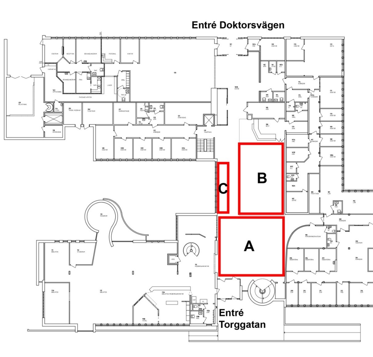 I Centrumhuset finns ett antal allmänna ytor som är bokningsbara. Dessa är: