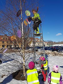 Påsken 2018 klädde barnen från förskolan Skattkistan påskris på torget med sina egengjorda påskägg!
