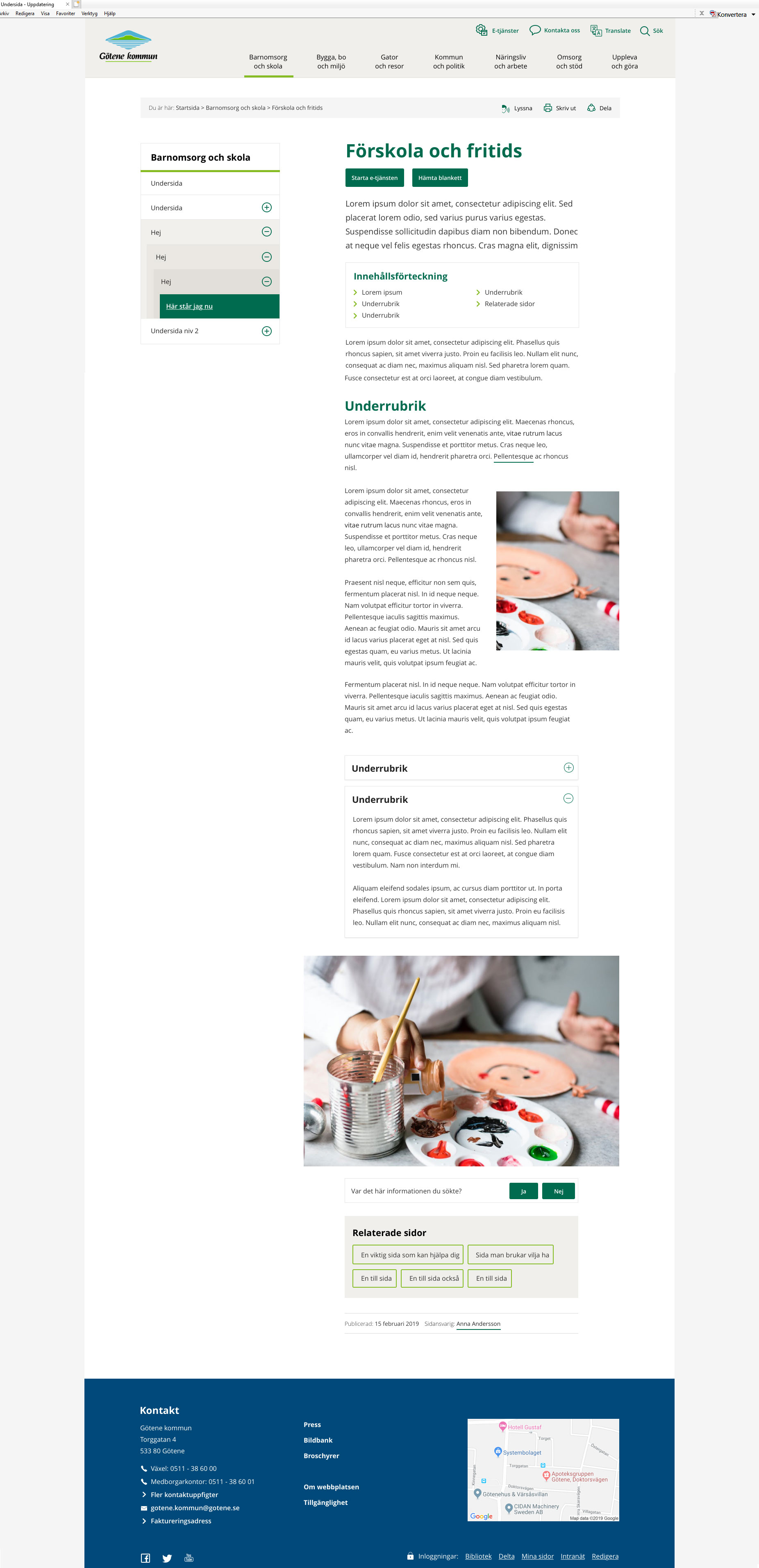Längre ner finns bilder på hur startsidan och ett exempel på hur en undersida kommer att se ut.