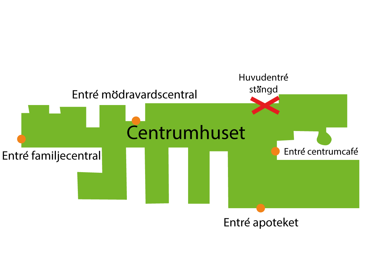 Mellan onsdag den 7 december och tisdag den 13 december är huvudentrén till Centrumhuset avstängd på grund av byte till de nya entrédörrarna.