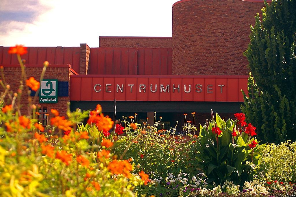 Förstora bildenCentrumhusets fasad med blommor. Klicka på bilden för att förstora.