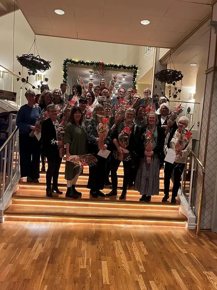 Kvällen avslutades med utdelning av blommor till alla medarbetare och de som arbetat i 25 år fick även en minnesgåva.