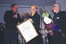 Förstora bildenHedersbetygelserna mottogs av Kjells dotter Annika. Klicka på bilden för att förstora.