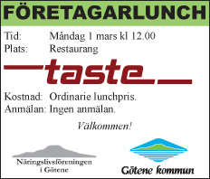 Näringslivsföreningen och Götene kommun arrangerar Företagarlunch den första måndagen varje månad, med undantag för januari, juli och augusti.