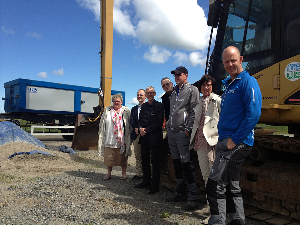 Förstora bildenFramför en grävmaskin med 18 meters räckvidd står Åsa Karlsson, Jerker Andersson-Liljestrand, Åke Fransson, Anders Månsson, Magnus Hulth, Susanne Andersson och Mikael Bertilsson. Klicka på bilden för att förstora.